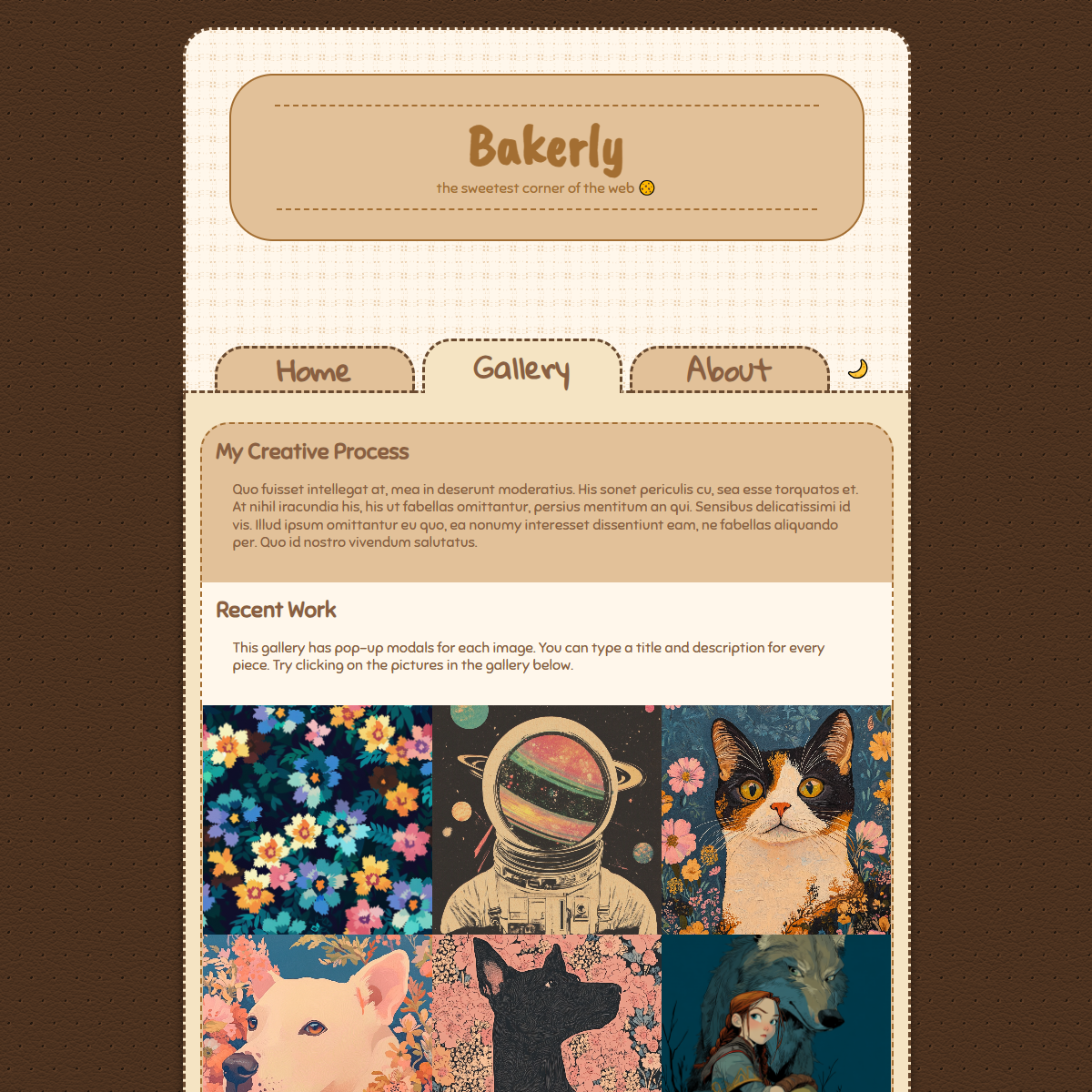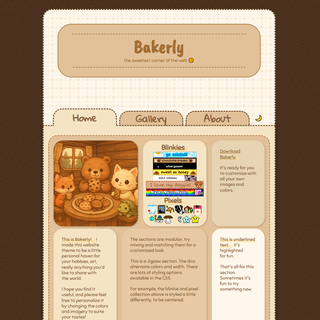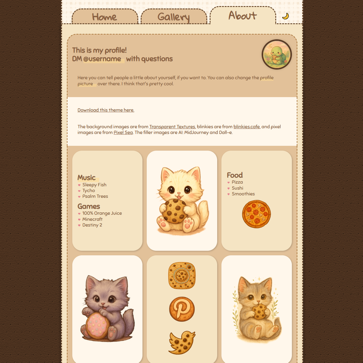 Tabbed page with modular sections, inspired by cutesy old web websites and modern Carrd style profiles.
